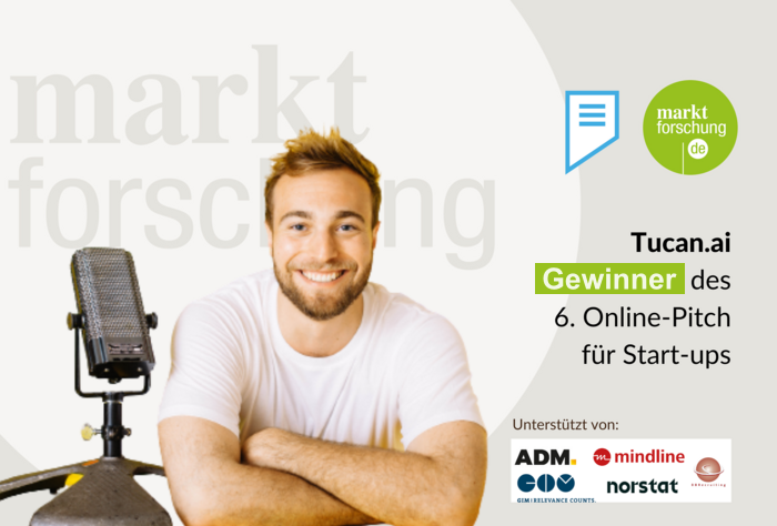 Im vergangenen April fand der sechste Startup Pitch von marktforschung.de und Consulting.de statt, ein deutschlandweiter Online-Wettbewerb für Marktforschung, Consulting und Data Analytics. Vier Startups aus den Feldern KI, UX, CX und Data Analytics durften ihre Geschäftsideen vor einem Fachpublikum und einer hochkarätigen Jury präsentieren. Das Rennen machten dieses Jahr glücklicherweise wir. Mit dem folgenden Video hatte unser Mitgründer Florian Polak Tucan.ai im Vorfeld vorgestellt.